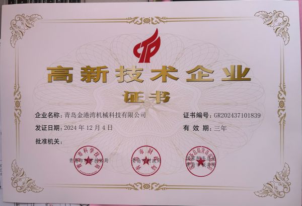 祝贺:青岛金港湾机械科技有限公司成功晋级为国家高新技术企业