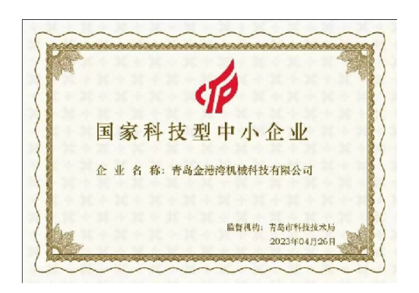 祝贺:青岛金港湾机械科技有限公司成功晋级为国家高新技术企业